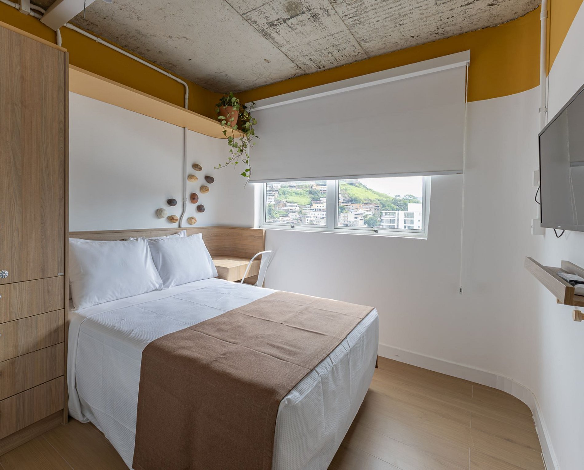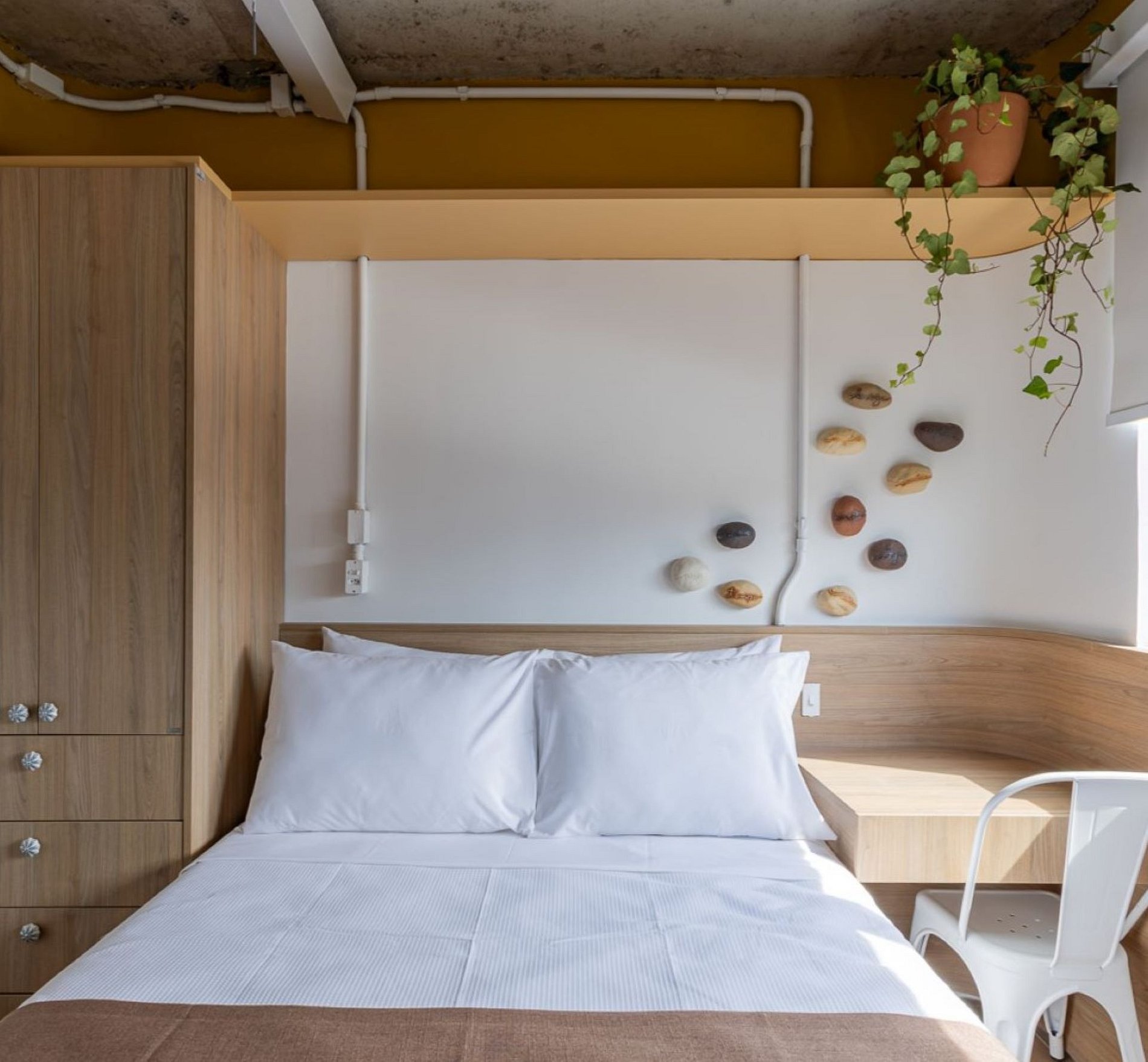 * Os quartos foram cuidadosamente projetados em estilo retrofit dos silos da antiga Fábrica Moinho Vera Cruz, com uma abordagem sustentável que privilegia o uso de materiais recicláveis. Além disso, a construção do ambiente contou com o trabalho de artistas e empreendedores locais, garantindo um espaço confortável e autêntico.